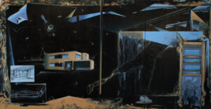 Lack, Kohle und Acryl auf Leinwand